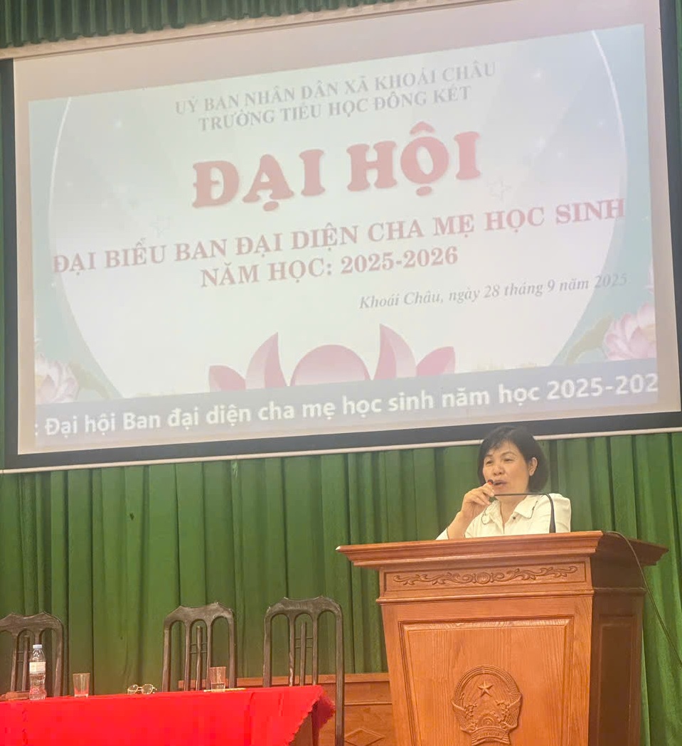 Sáng ngày 28 tháng 9 năm 2025, Trường Tiểu học Đông Kết đã long trọng tổ chức Đại hội Đại biểu Ban đại diện Cha mẹ học sinh năm học 2025-2026. Sự kiện quan trọng này đánh dấu bước khởi đầu cho một năm học mới, với mục tiêu tăng cường sự phối hợp chặt chẽ giữa nhà trường và phụ huynh, cùng nhau xây dựng môi trường giáo dục tốt nhất cho các em học sinh.