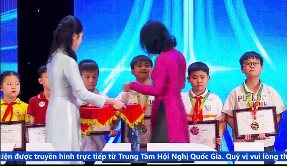 Hôm nay, thứ Bảy ngày 17/05/2025 tại Trung tâm hội nghị Quốc gia thành phố Hà Nội, em Đỗ Anh Khoa – Học sinh lớp 3A, Trường Tiểu học Đông Kết, huyện Khoái Châu, tỉnh Hưng Yên – học sinh đạt 2 giải Bạc môn Toán và Tiếng Việt đã vinh dự đại diện cho các bạn đạt giải cao của trường Tiểu học Đông Kết tại lễ trao giải của cuộc thi Violympic cấp Quốc gia năm học 2024-2025.