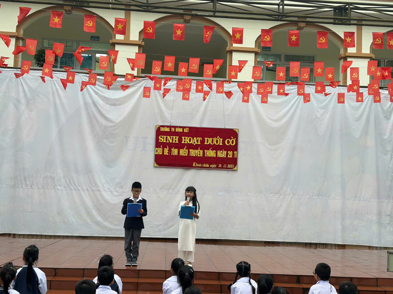 Sáng nay, ngày 10 tháng 11 năm 2025, tại trường Tiểu học Đông Kết đã diễn ra buổi hoạt động ngoại khóa sôi nổi và ý nghĩa do học sinh khối 3 tổ chức, với chủ đề “Tìm hiểu truyền thống ngày 20/11”. Buổi giao lưu mang đến nhiều cung bậc cảm xúc và những trải nghiệm đáng nhớ cho các em.