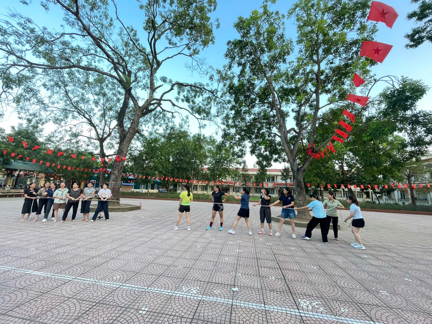 Một trong những điểm nhấn của buổi lễ là các hoạt động thể thao lành mạnh như thi kéo co, chuyển bóng, đoán chữ tạo cơ hội để các thành viên trong tập thể vừa rèn luyện sức khỏe, vừa tăng cường tinh thần đoàn kết, xây dựng môi trường làm việc “hạnh phúc – mỗi ngày đến trường là một ngày vui”.