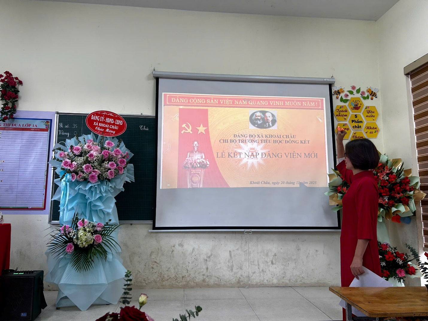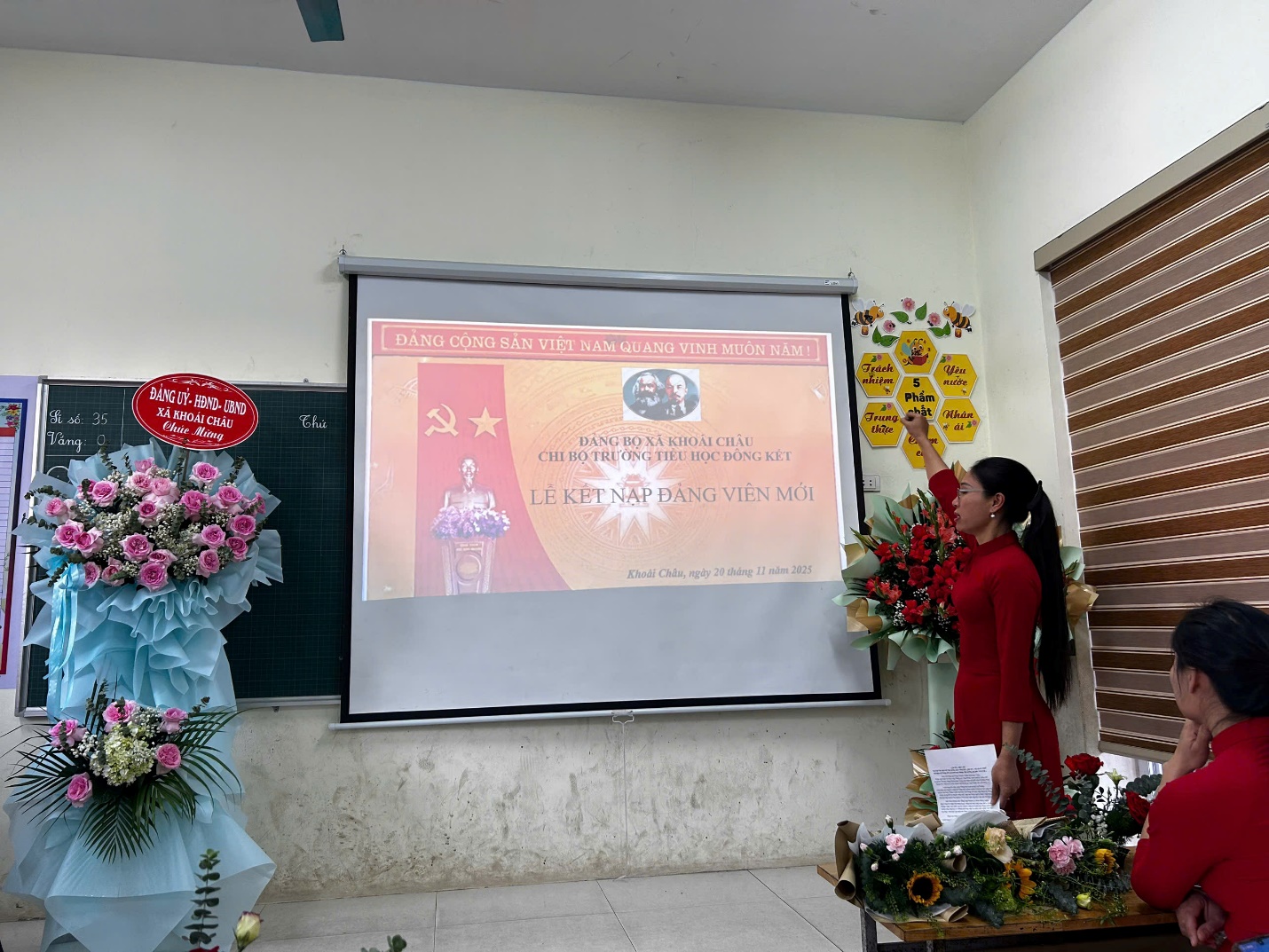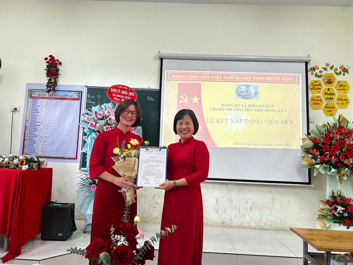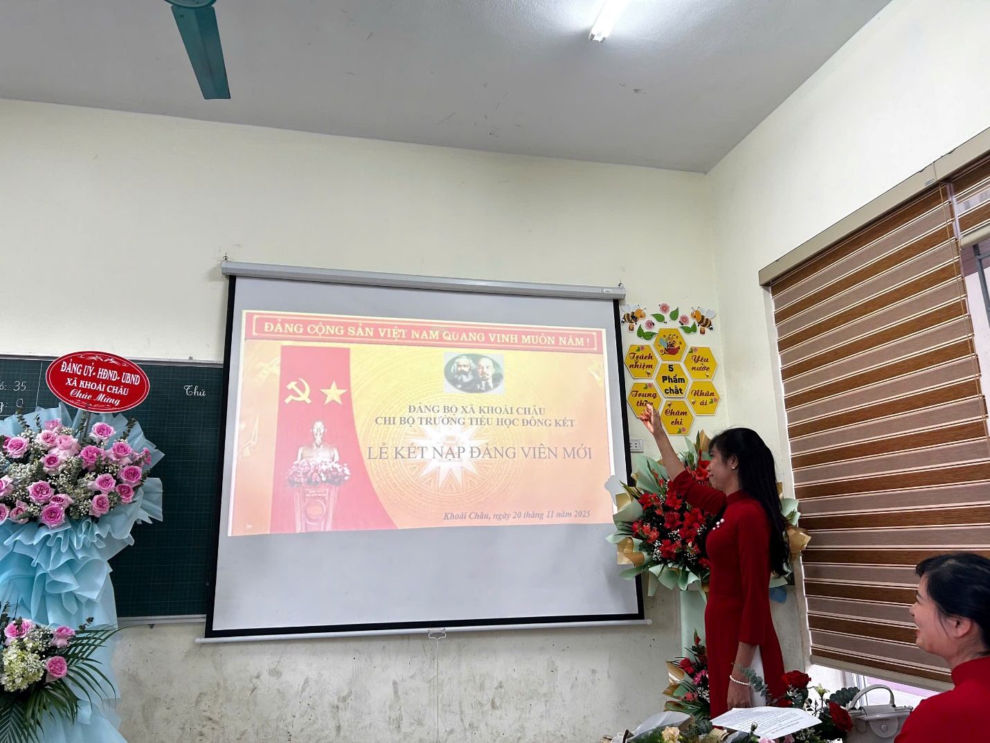 Chiều ngày 20 tháng 11 năm 2025, Chi bộ Trường Tiểu học Đông Kết đã long trọng tổ chức Lễ kết nạp Đảng viên mới cho 6 quần chúng ưu tú, đánh dấu một bước phát triển quan trọng của Đảng bộ tại địa phương. Buổi lễ được tổ chức trang nghiêm, đúng theo quy định của Điều lệ Đảng, trong không khí phấn khởi và tự hào.