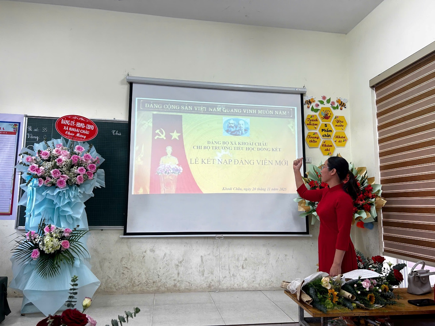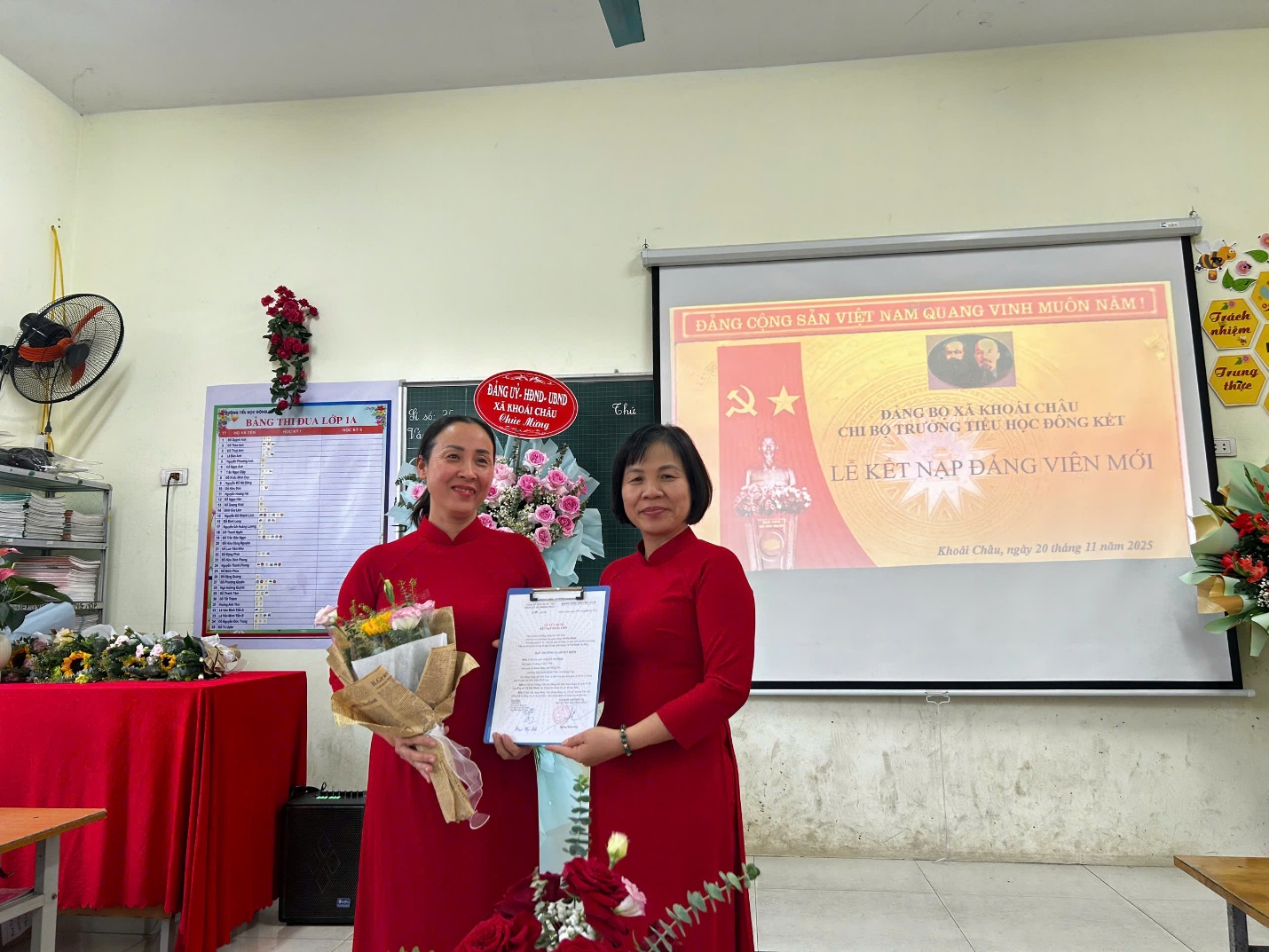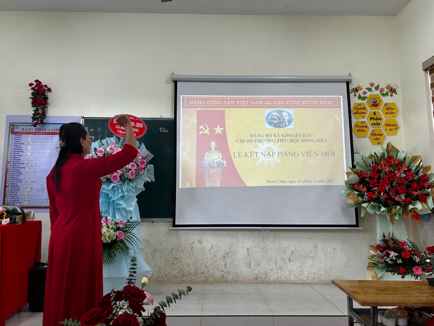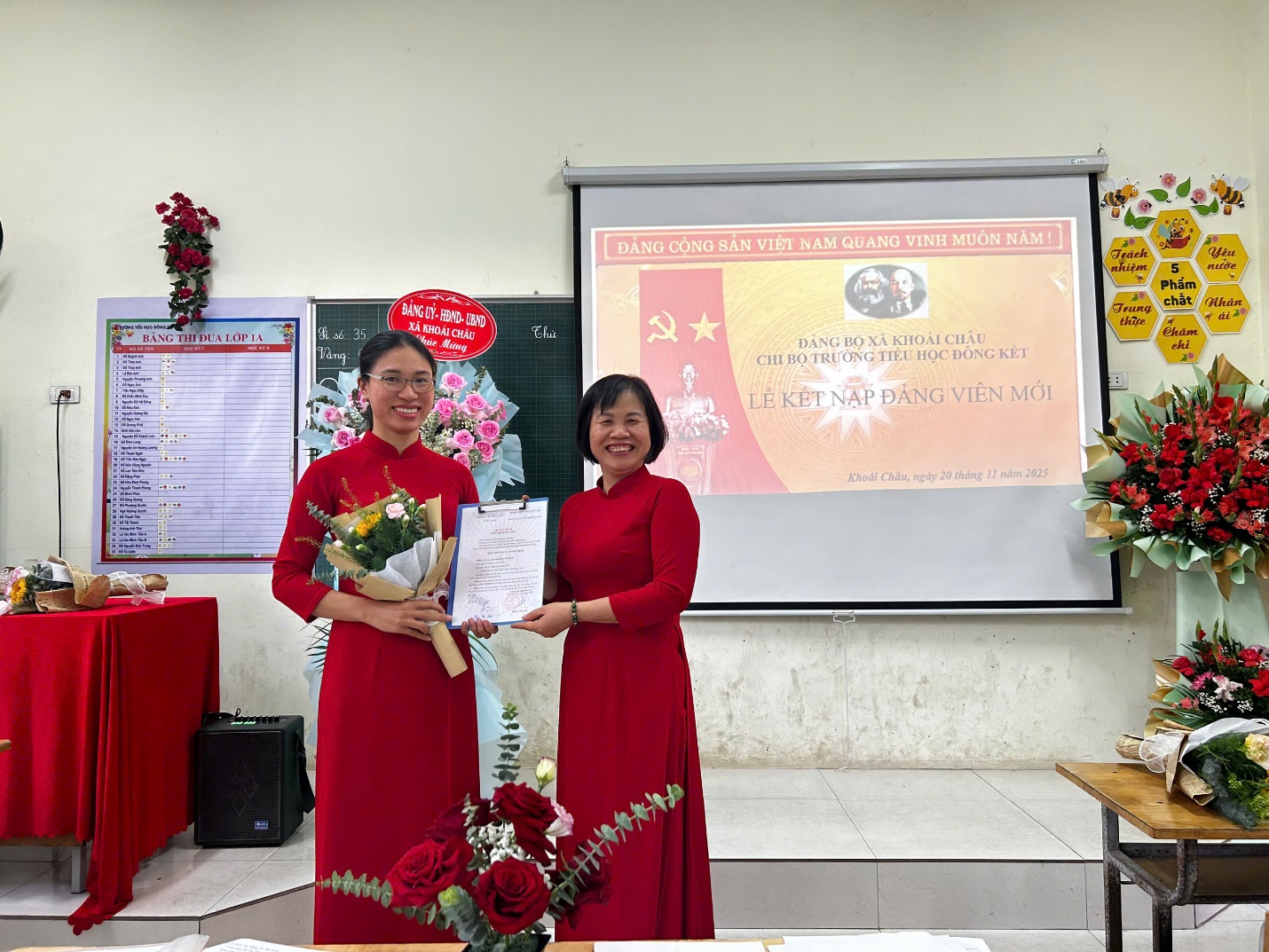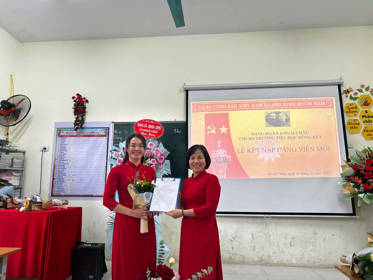Chiều ngày 20 tháng 11 năm 2025, Chi bộ Trường Tiểu học Đông Kết đã long trọng tổ chức Lễ kết nạp Đảng viên mới cho 6 quần chúng ưu tú, đánh dấu một bước phát triển quan trọng của Đảng bộ tại địa phương. Buổi lễ được tổ chức trang nghiêm, đúng theo quy định của Điều lệ Đảng, trong không khí phấn khởi và tự hào.