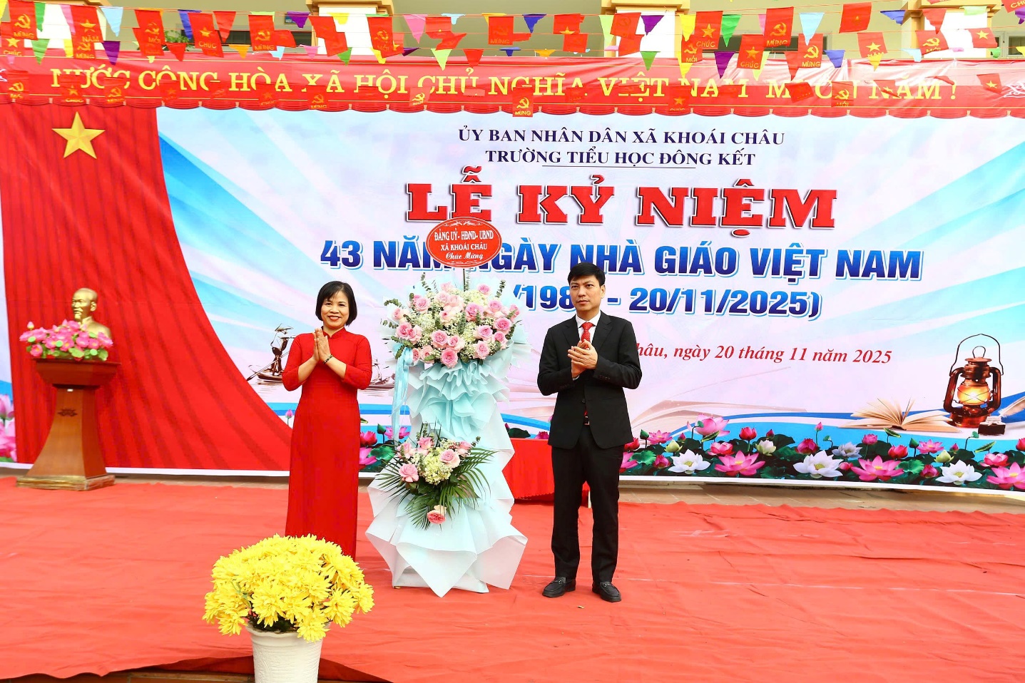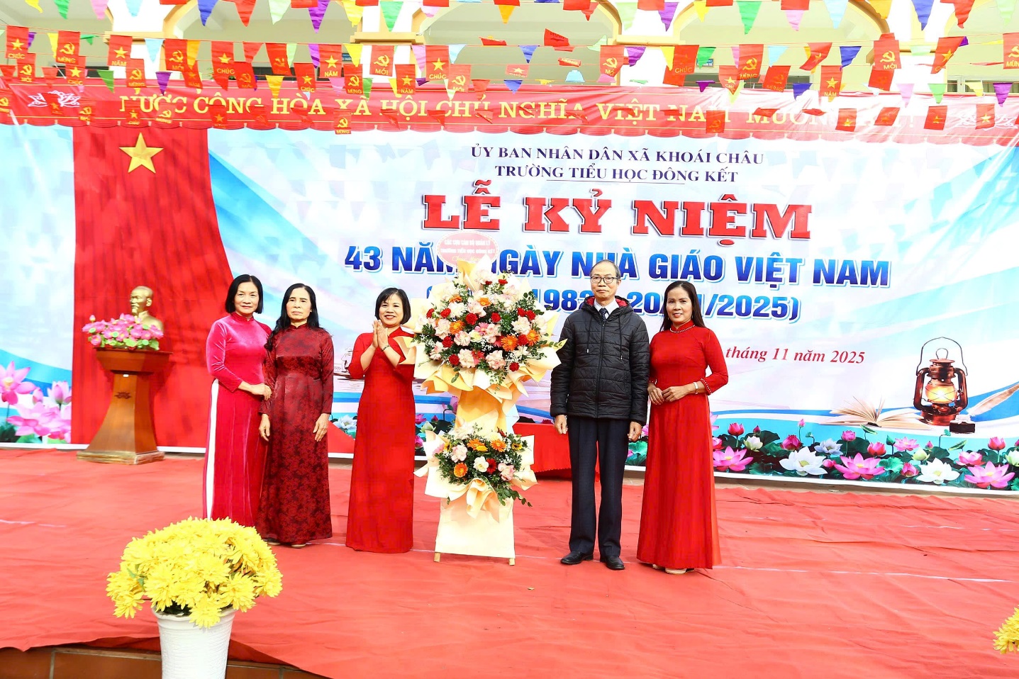 Đại diện cho các cấp lãnh đạo địa phương, Ông Bùi Huy Cường, Tỉnh ủy viên – Bí thư Đảng ủy xã Khoái Châu, đã có bài phát biểu động viên và biểu dương những đóng góp tích cực của Trường Tiểu học Đông Kết đối với sự phát triển giáo dục tại địa phương, đồng thời khẳng định sự đồng hành, hỗ trợ của chính quyền trong các hoạt động sắp tới.