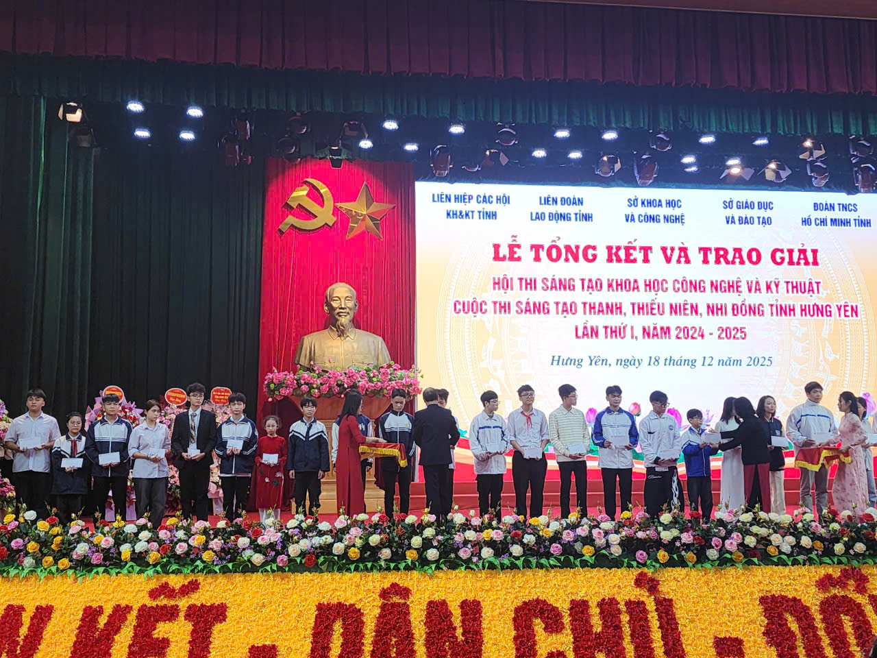 Sáng ngày 18 tháng 12 năm 2025, Lễ tổng kết và trao giải Hội thi Sáng tạo Khoa học công nghệ và Kỹ thuật Cuộc thi Sáng tạo thanh, thiếu niên, nhi đồng tỉnh Hưng Yên lần thứ I, năm 2024-2025 đã được tổ chức tại trung tâm Hội nghị tỉnh Hưng Yên.